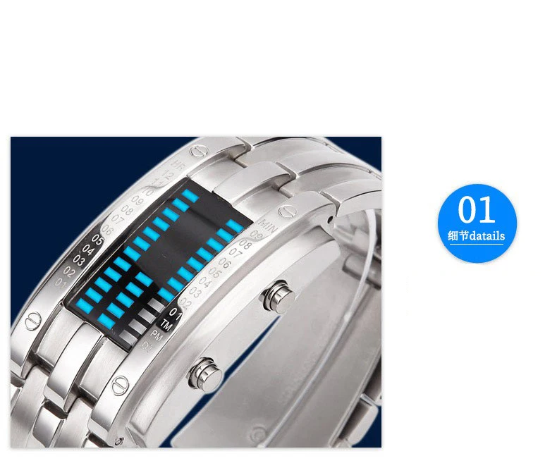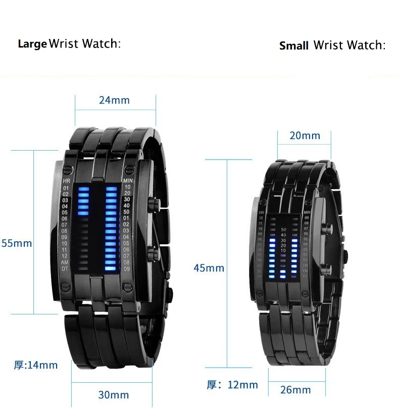 Date binary digital LED bracelet watch for men/women, lovers.
