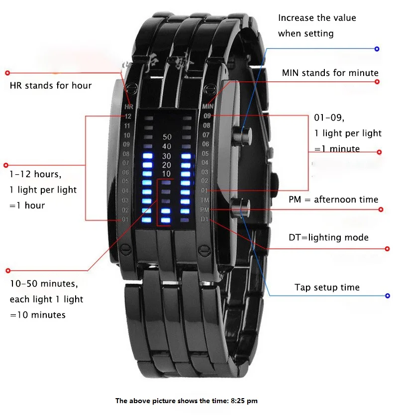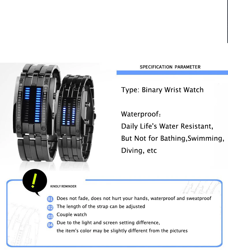 Features: Multi-Function, Binary Design, Date Display, Blue LED