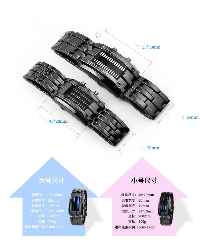 Date binary digital LED bracelet watch for men/women, lovers.